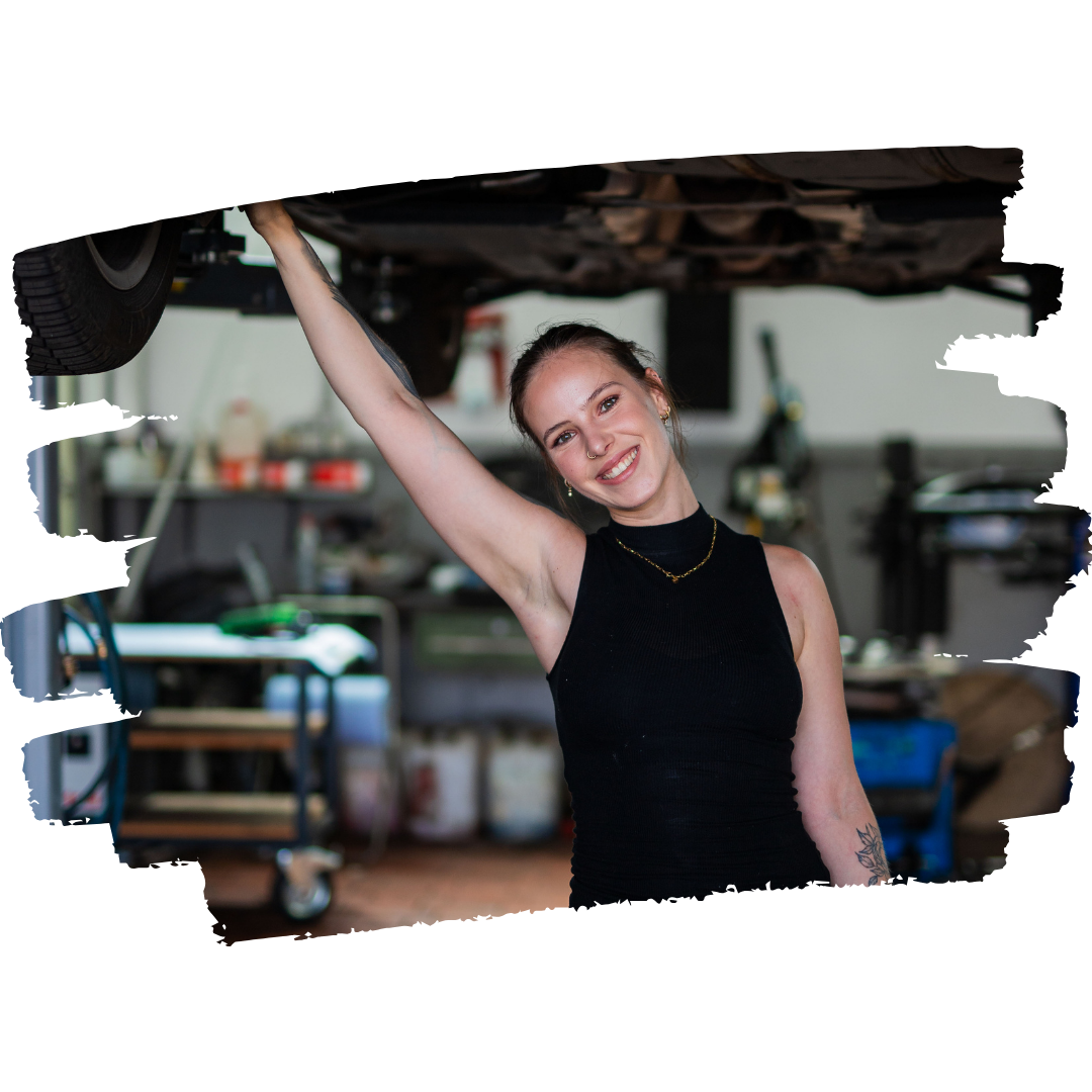 ...und ich bin Kfz-Mechatronikerin und Content Creatorin der Social Media Kanäle "@die_kfzlergarage", woher du mich wahrscheinlich kennst :)