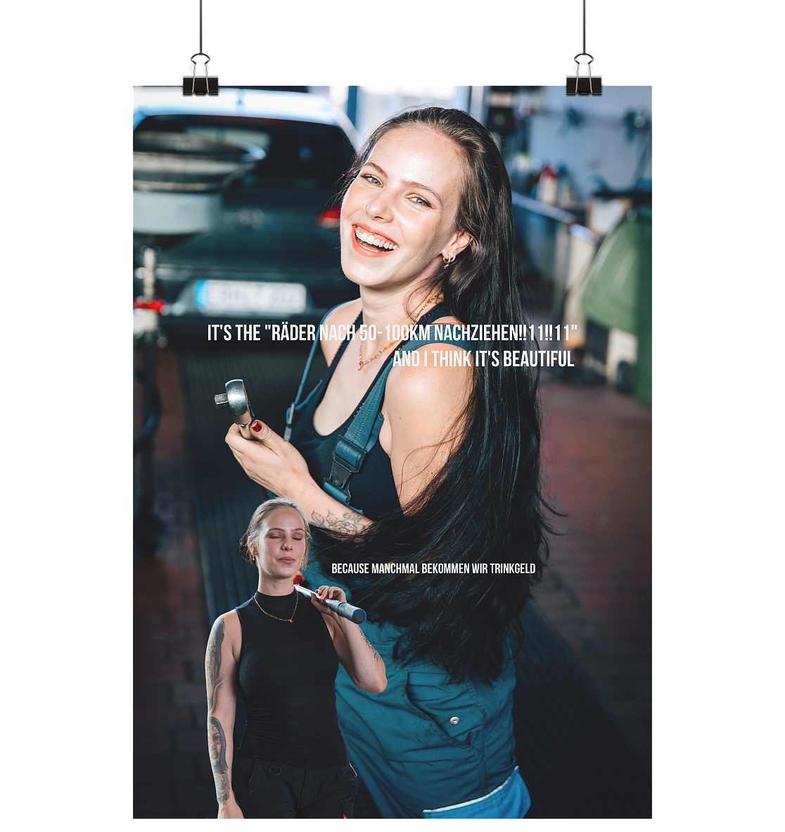 Erlebe die Werkstatt auf eine neue, emotionale Weise mit dem "Werkstattposter - Räder nachziehen". Dieses Poster ist mehr als nur ein dekoratives Element; es ist eine Hommage an alle, die mit Leidenschaft und Hingabe arbeiten.